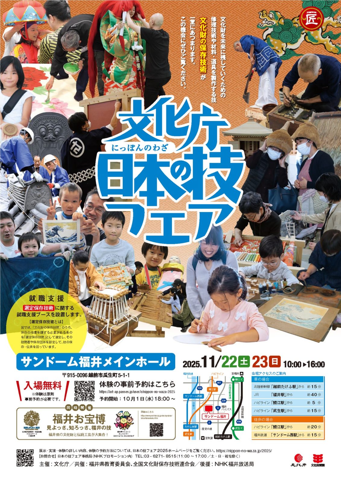 文化庁の文化財紹介イベント「日本の技フェア」に本年も体験等で参加いたします。