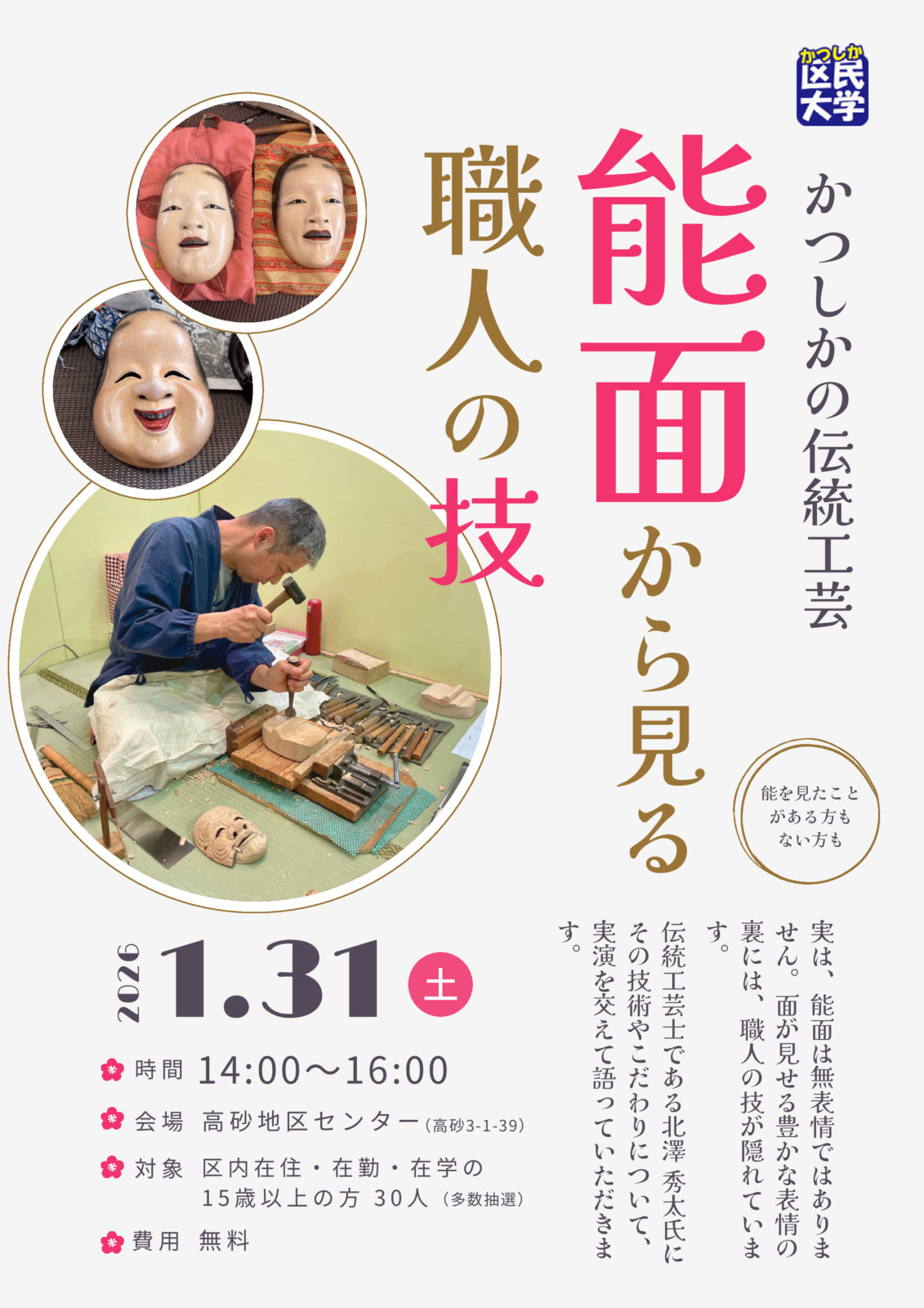 かつしかの伝統工芸「能面から見る職人の技」|葛飾区公式サイト https://www.city.katsushika.lg.jp/event/1000106/1040196.html