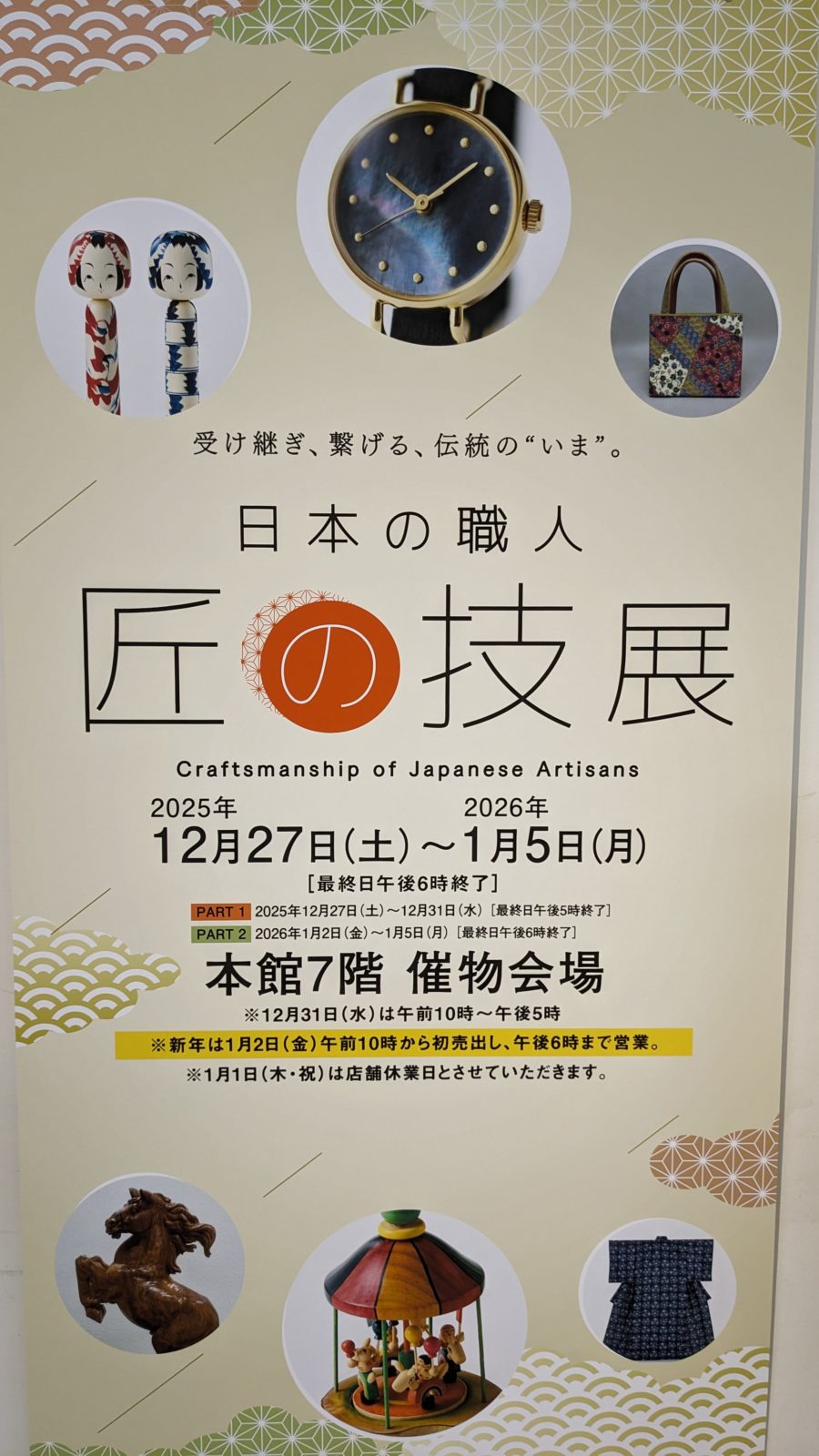 12/27-26/1/5 三越本店「日本の職人「匠の技」展」 檜垣彫金工芸 メンバーの活動・紹介 X Facebook はてブ LINE コピー 2026.01.032026.01.05 三越日本橋本店で開催させる恒例の催事「日本の職人「匠の技」展」。本年も手編みジュエリー檜垣彫金工芸が出展。 12/27(土)から1/5(月)まで。元旦1/1(木)は店舗休業日。 この投稿をInstagramで見る 檜垣彫金工芸(@teami.jewelry)がシェアした投稿