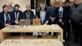 素材「紅木」(こうき)から紹介。各パーツの制作風景、また「花梨」(かりん)の胴部分や革を張る作業など、三味線の製造工程を実演を交えて解説されました。